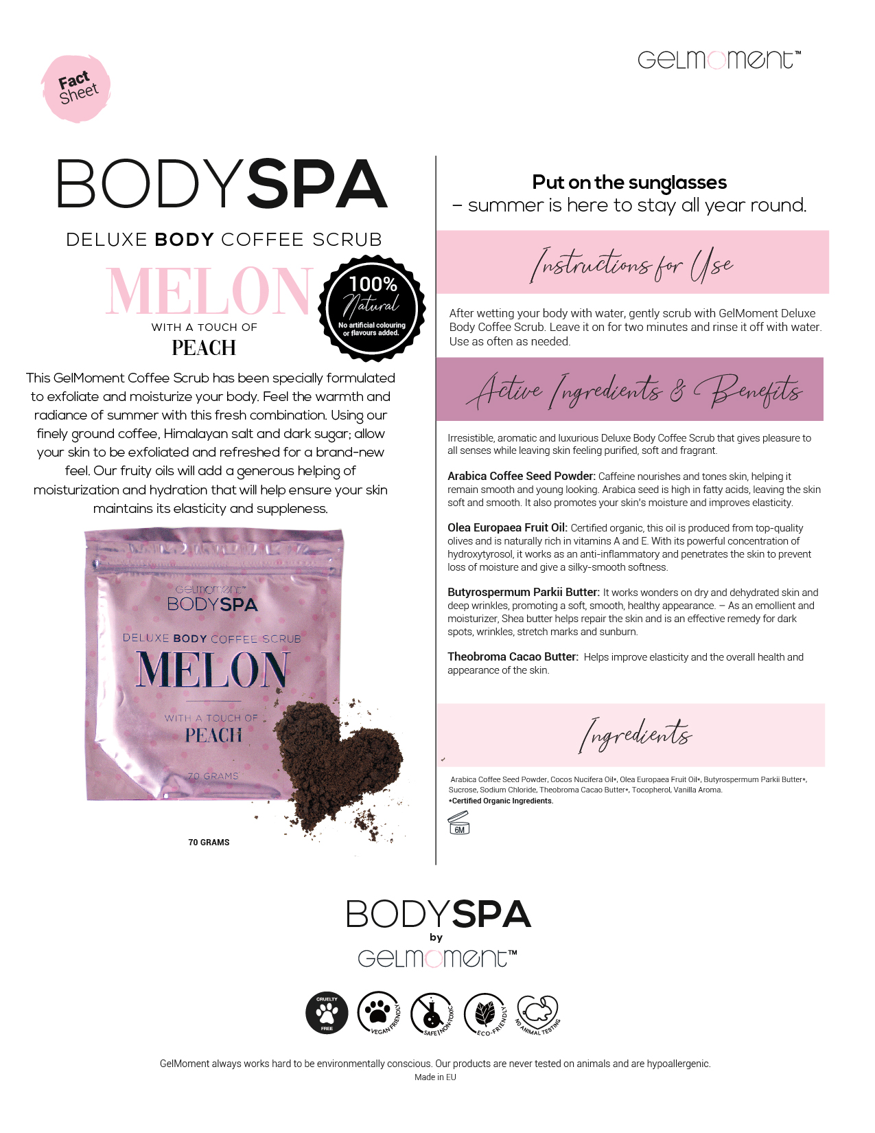 This fun and fruity body scrub incorporates Himalayan salt and dark sugar to complement our finely ground coffee. It's an all-over sweet treat!
